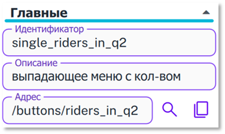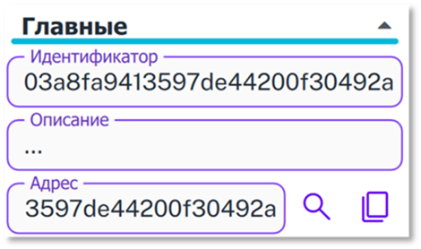 3. Адрес – адрес в datahub, по которому приходят уведомления о состоянии или значении объекта при наличии подписки в бизнес-логике или модуле Events. Разные объекты отправляют с уведомлениями разные данные. Рядом с полем расположены иконки для поиска адреса среди всех существующих объектов и для копирования содержимого поля