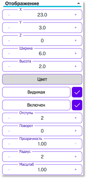 10. Поворот – угол поворота объекта (может быть как отрицательным значением, так и положительным)