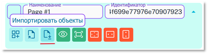 - Путём импорта списка элементов из ранее сохраненных страниц (если при загрузке было выбрано несколько страниц или загружена конфигурация с несколькими страницами, то все элементы добавятся внутрь одной страницы, сохранив своё положение, т.е. могут быть наложены друг на друга):